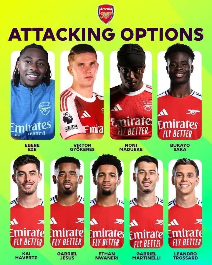 本赛季刚刚开打,厄德高与萨卡再度受伤,但阿森纳球迷似乎对此并不担心,庞大的锋线配置就是他们的信心所在。约克雷斯已经在对阵利兹联的比赛中展示了自己的“虐菜”能力,马杜埃凯和埃泽都是在英超证明过自己的球员,前者的出现了弥补枪手侧翼持球单打能力不足的短板,后者可以在双核缺阵时扮演起进攻轴心的角色。