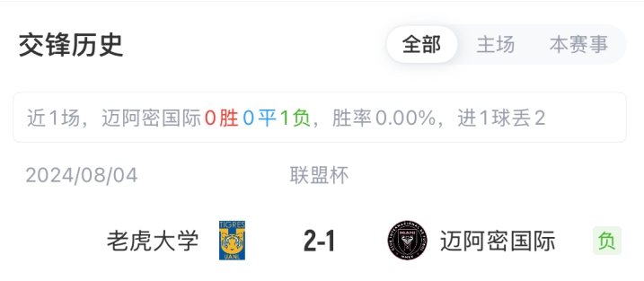 8月21日联盟杯四分之一决赛即将打响,迈阿密国际对阵老虎大学。赛前公布的阵容显示,梅西本场比赛将缺席。